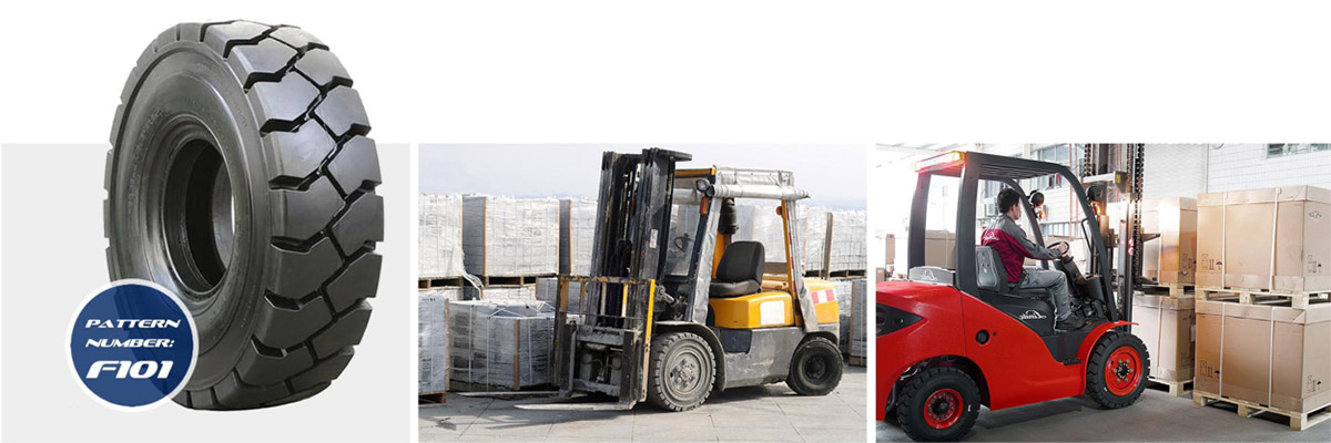 Suitable for scrapers and forklifts in areas like ports, factories, warehouse, etc; Excellent cutting and wearing resistance; Good comtact and traction performance provided by thick tread pattern; Good self-cleaning capacity; Long service life.